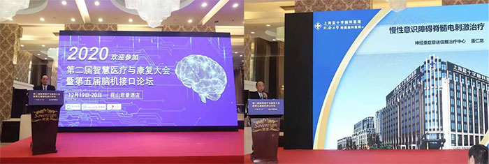 2020年12月19日至20日,在昆山举行了“第二届智慧医疗与康复大会暨第五届脑机接口论坛”。该会级别很高,大会指导单位为中国生物医学工程学会、中国电子学会,由华东理工大信息科学与工程学院、西安交大人工智能学院、智能医学工程教育部工研中心、上海脑科学与类脑研究中心等单位主办。来自中科院脑智卓越创新中心、中科院自动化研究所、清华、上海交大、国防科技大、天津大学等40余所高校和近20家企业,共350余人参加了本次会议。潘仁龙主任应邀参会,并做了以《慢性意识障碍脊髓电刺激治疗》为题做了学术报告。
