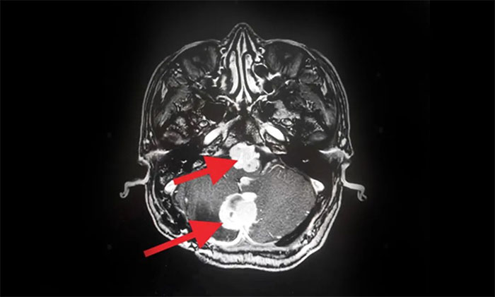 2019年,出现头痛等症状后再次就医。查头颅MRI提示:多发性脑肿瘤,考虑小脑血管母细胞瘤术后复发,基因检测提示VHL(Von Hippel-Lindau,希佩尔- 林道综合征),后采取保守治疗。