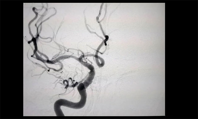 经过与医院脑血管病病区主任张琪博士团队开展评估会诊,在医院DSA系统的支持下,由张琪博士为胡老伯行右侧大脑中动脉球囊扩张及支架置入手术。术中造影观察可见,狭窄明显改善,血流也随即恢复了通畅。