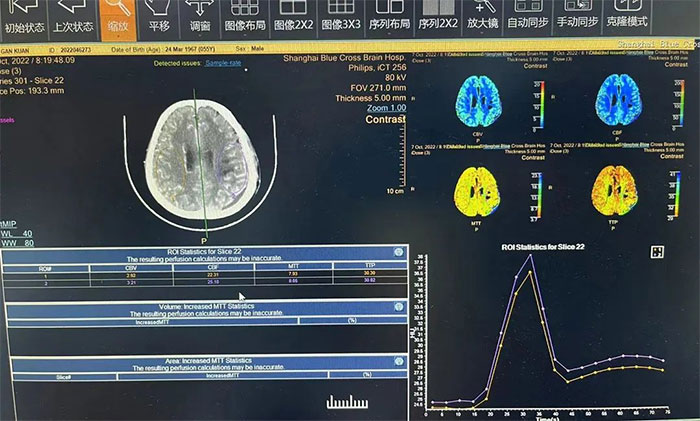 ▲ 术后查CTP,左侧大脑灌注明显改善