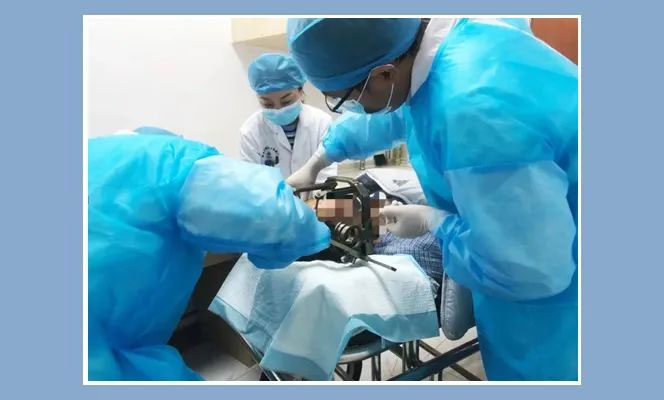 第二步,开展头部伽玛刀治疗,通过高能伽玛射线照射病变组织,毁损靶区肿瘤组织。