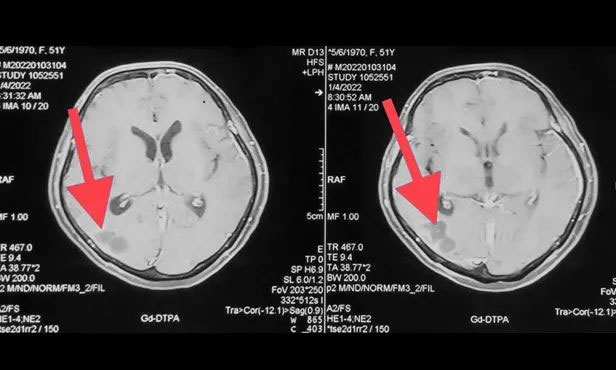 去年底,王女士在无明显诱因的情况下,出现头晕头痛、恶心呕吐、肢体乏力。因为之前得过乳腺癌,所以当她在当地医院查出右脑枕顶叶肿瘤时,医生结合她既往乳腺癌伴肺转移的病史,直接考虑为乳腺癌脑转移瘤。
