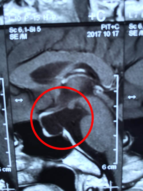 清晰影像之下 “元凶”无可遁形(红圈内即为垂体柄囊肿)