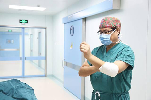 ▲为手术做准备的杨忠旭博士