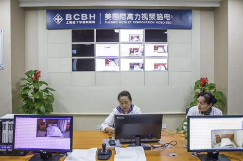 ▲崔丽华主任正在进行脑电监测