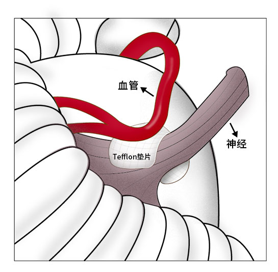 ▲ 微血管减压术,以Tefflon垫片将责任血管和神经进行分离