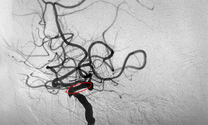 神经内科3A病区周君主任为患者完善检查,头颅MRI示:脑干及双侧大脑半球多发陈旧梗死灶,左侧胼胝体、半卵圆中心、侧脑室旁及额叶多发梗死灶,偏亚急性期。脑动脉硬化,颅底动脉多发不同程度狭窄(左侧颈内虹吸段为著)。“显然,这不是简单的脑梗复发。”周君主任表示,从影像学上,患者左侧脑室旁散在多个新鲜梗死灶,处在左侧颈动脉供血支配范围内,符合因左侧颈内动脉狭窄而造成脑组织缺血表现。此前球囊扩张成形术一定程度上缓解了患者脑梗急性期缺血的情况,但未从根本上解决动脉血管狭窄问题,需要尽快采取进一步干预措施,避免脑梗症状进一步加重,预防后期复发。