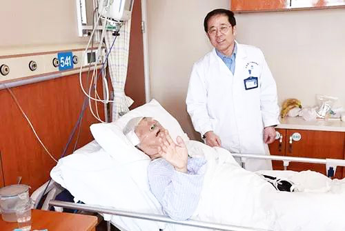 27床病人家属曹大爷说:“感谢蓝十字啊,有这样一位德艺双馨的好大夫,什么事都亲自过问,每天都至少查房3次,每次都嘘寒问暖的,把我们当家人一样对待。李主任不仅捡回了老伴的一条命,也帮助了我啊。我一直走路不平稳,一辈子从没看过脑子,李主任一看我的症状,就说我小脑出了问题,建议住院治疗,我治疗了10天,现在都能正常走路了。我们老两口认识的朋友多,我们今后一定多在社区宣传,让他们有问题都来蓝十字,都找李主任。”