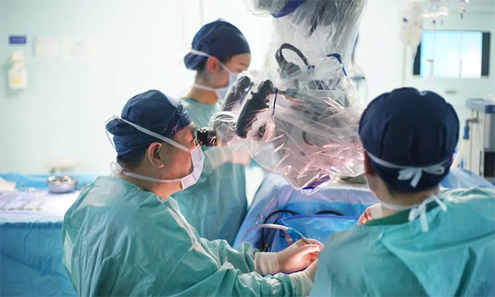 在制定详细手术方案并充分完善术前准备后,11月23日,李士其教授在吴治群博士、黄秀夫医生协助下为患者行经鼻蝶手术,经过3个多小时的手术,在显微镜下顺利分离、切除巨大垂体腺瘤,最大程度地保护了周围重要组织结构。术后患者头痛头晕症状消除,视力视野明显较术前改善,无新增神经功能障碍。目前患者已经顺利康复出院,李士其教授叮嘱患者出院后仍要坚持定期复查。
